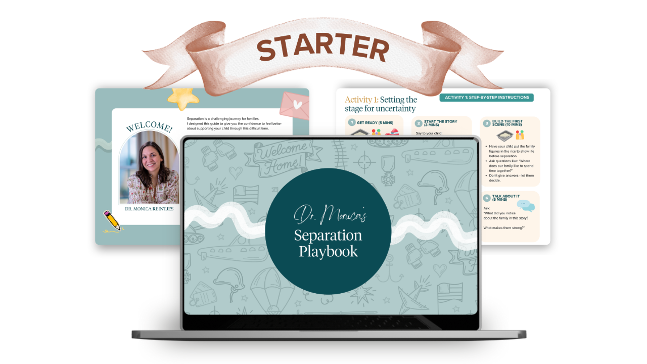 Dr. Monica’s Separation Playbook Kit brings the Playbook to life with a collection of thoughtfully curated toys and supplies, personally chosen by Dr. Monica to help your child engage, express, and connect through play. 💕